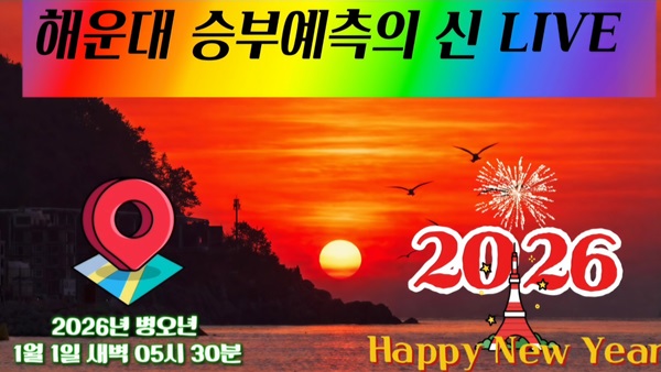 해운대 승부예측의 신 LIVE의 2026년 새해 첫 일출 라이브 진행 소식을 알리며...
